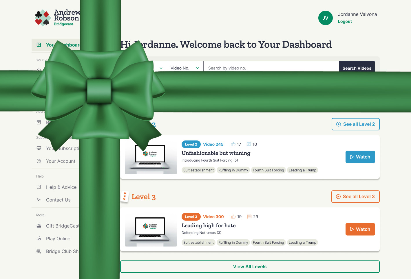 “These BridgeCasts are amazing, the best learning and teaching resource ever. I only learnt to play (at an advanced age) just before lockdown and watching them has given me the confidence to keep going. Obviously going to be a ‘lifetime subscription’ for me!!!"